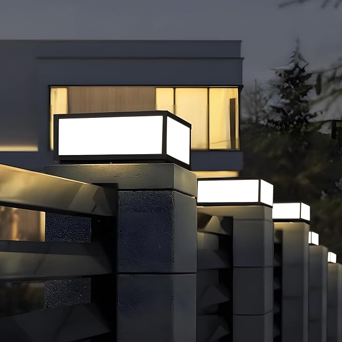 - 【Modern Simple Design Post lights】High-end black spray treatment and matte texture bring a simple and beautiful artistic conception. modern outdoor post lights can 4-6 square irradiation area, 24W, 1500LM, 180° beam angle. It is recommended to use a dedicated waterproof connector as the wiring connector (not included in the package)