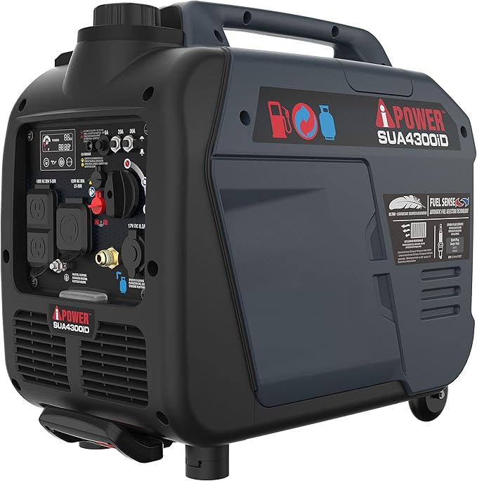 A-iPower 4300-Watt Dual Fuel Portable Inverter Generator, RV Ready Lightweight w/CO Sensor for Backup Home Use, Tailgating & Camping, CARB Compliant (SUA4300iD)