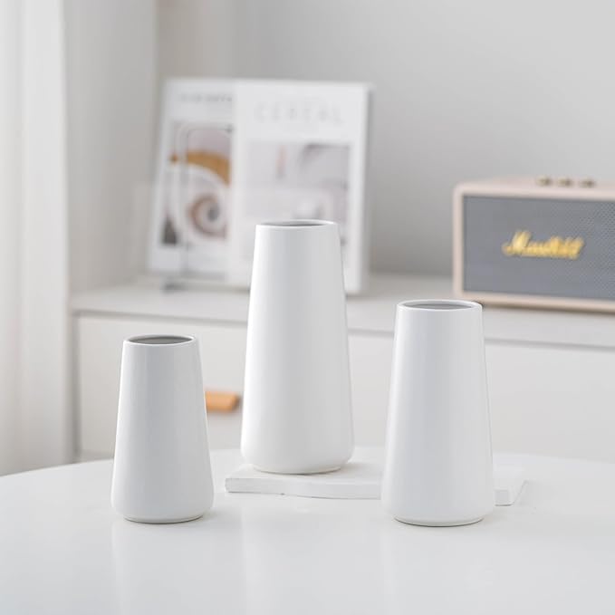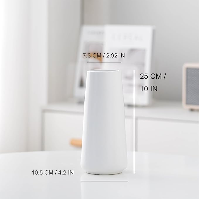 10" White Vase - Large White Ceramic Flower vase, Boho Vases for Pampas Grass, Minimalist Modern vases for Home Decor, Table Shelf Living Room Farmhouse Decor