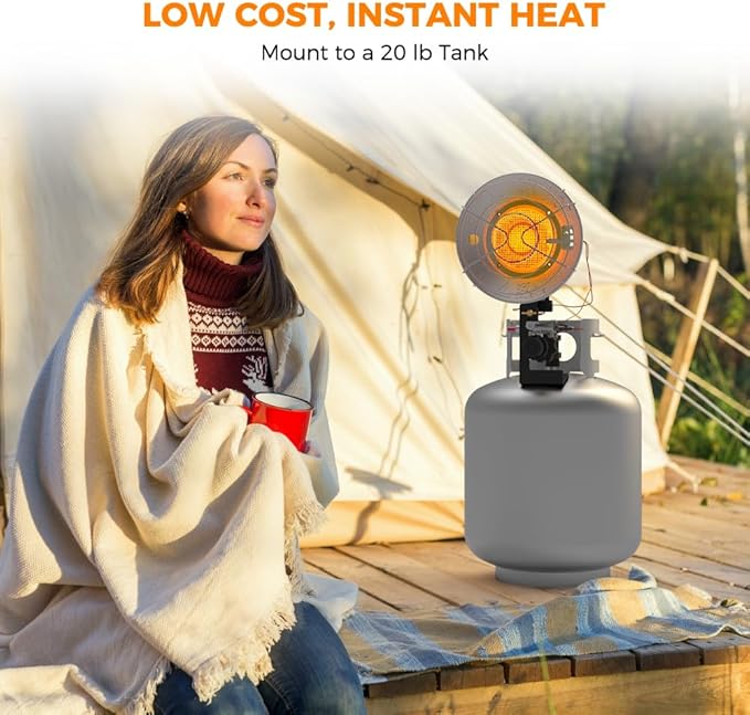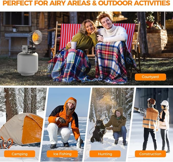 - 【Strong Rapid Heat Output】--Powerful propane heater provides radiant infrared heat, heating up your garage, camping, hunting, backyard or fishing in a few minutes in the winter.