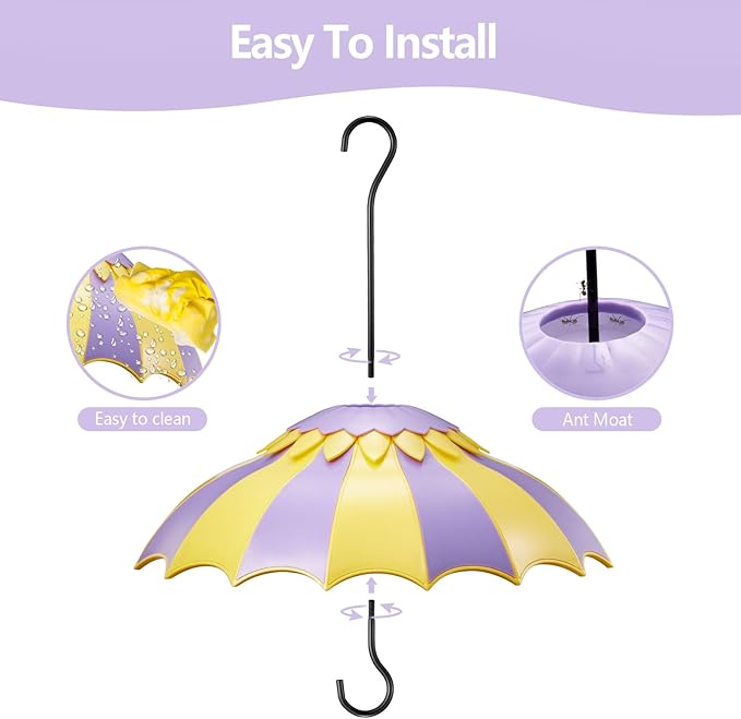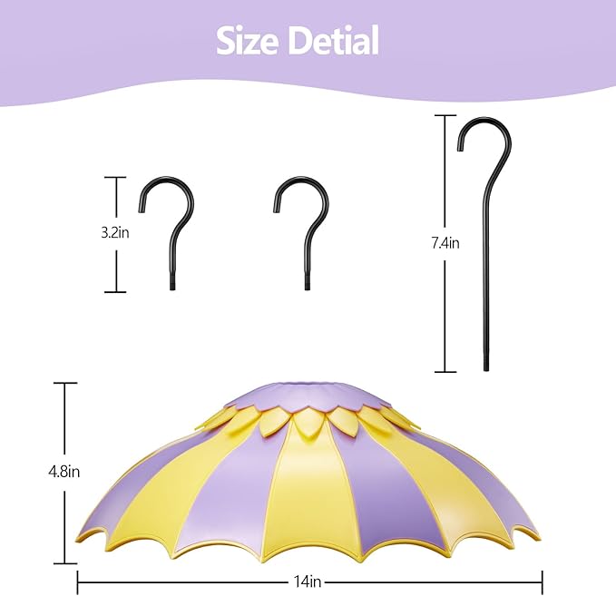 - 【BIRD FEEDER UMBRELLA】Our umbrella shap dome cover is based on the design principle of an umbrella and can be used either on a hanging hummingbird feeder or on other wild bird feeders, it acts like an umbrella to protect your feeder
