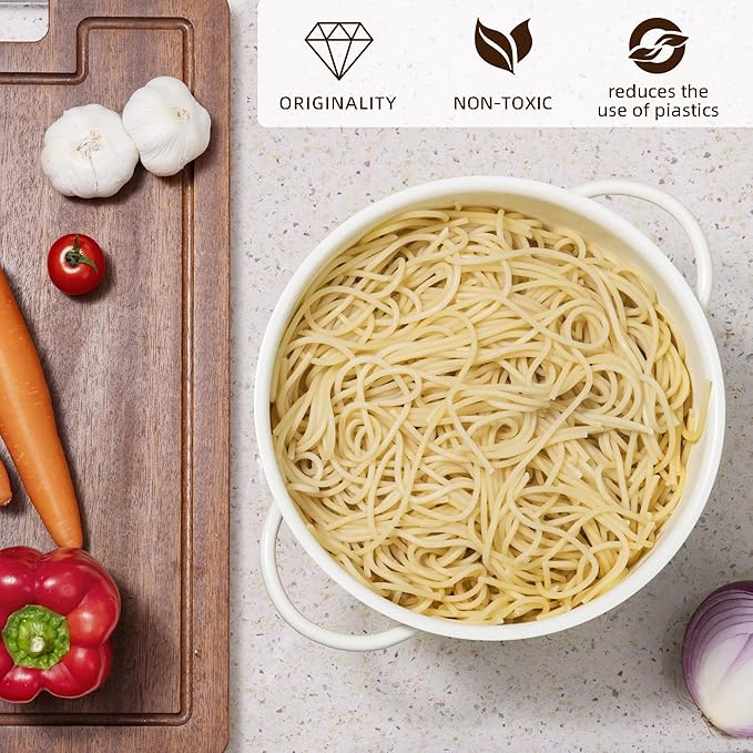 - 【Large Capacity】 The large opening design makes it easier to hold or put things in. Enough to hold 5QT of food, it can also be used to drain macaroni, wash vegetables and fruits as needed, as a fruit and vegetable basket, or even as a creative flower pot and ornament.