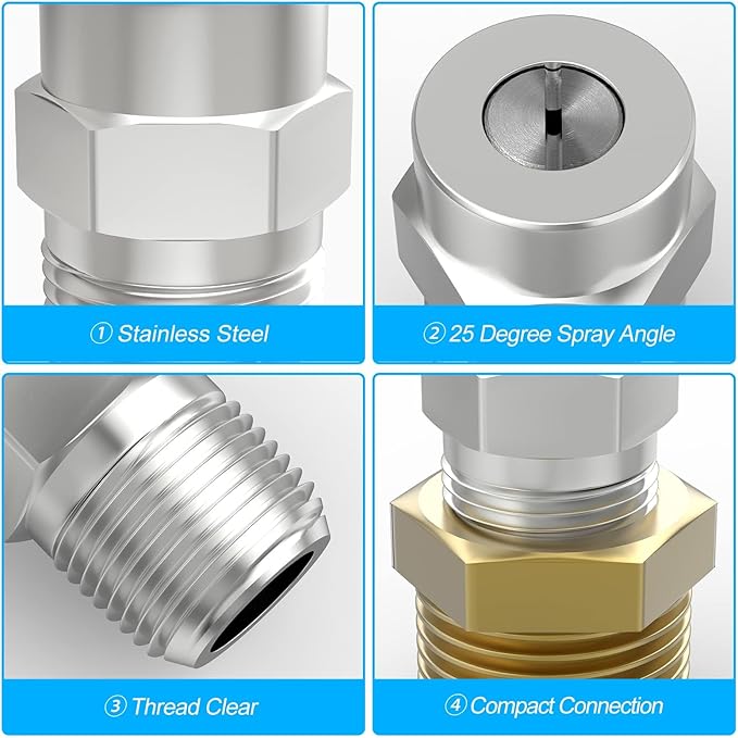 - 【Size】Spray angle is 25 degree, Orifice size is 2.5, 1/4" NPT male, very easy to install.