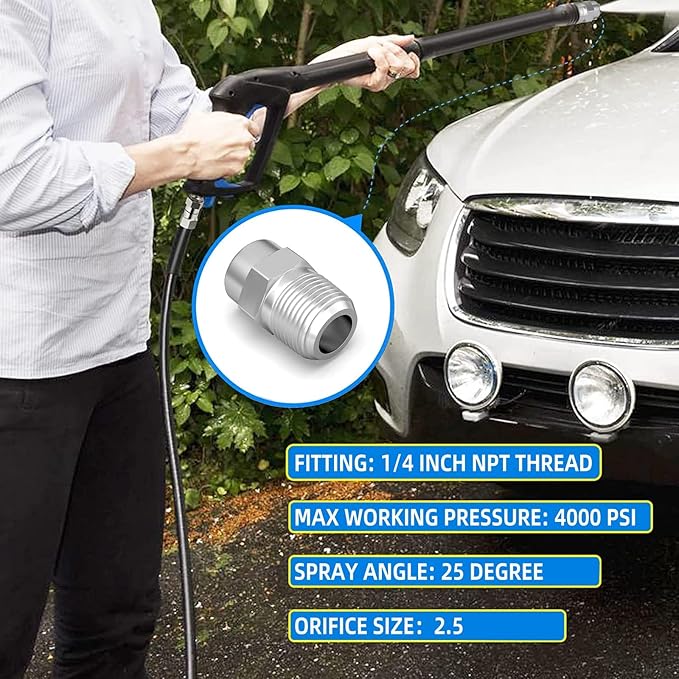25 Degree Surface Cleaner Tips, 1/4 Inch NPT Male, 2.5 Orifice, 4000 PSI Threaded Spray Nozzles, Replacement for Water Gun, Water Broom and Surface Cleaner (2-Pack)