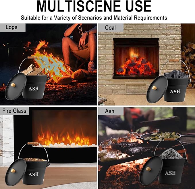 - 【Dual-purpose】 perfectly crafted hearth ash bucket for both outdoor and indoor use. It's designed to be used in wood-burning stoves, pizza ovens, grills, hearths, fire pits, and more. Use it to safely clean up ash, coal, and ember. More so, it's an ideal storage container that can be used to store fire glass, pellets, kindling wood, and other fireplace items.