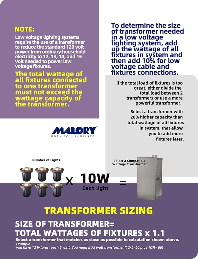 - LIFETIME WARRANTY:MALORY landscape lighting are built to the highest standards of construction and performance, we extends an industry-best lifetime warranty on its brass fixtures and 50,000 hrs for the LED bulbs.Please contact us if you have any issue, we will offer top rated customer service for you.