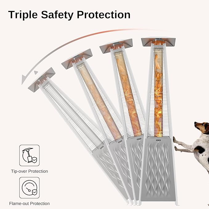 - ๐ง๐ฟ๐ถ๐ฝ๐น๐ฒ ๐ฆ๐ฎ๐ณ๐ฒ๐๐ ๐ฃ๐ฟ๐ผ๐๐ฒ๐ฐ๐๐ถ๐ผ๐ป : EAST OAK propane patio heater offers a triple safety protection system to ensure your well-being. Designed with anti-tip protection, it will automatically shut off the flame when tilted more than 45 degrees. If the flame is accidentally extinguished, the gas supply will shut off immediately.