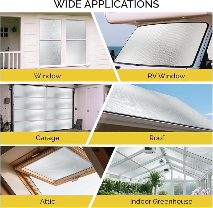 - Versatile Application: It has good sealing performance. This reflective insulation can be applied to a wide range of settings, including windows, attics, walls, floors, garages, sheds, greenhouses, cabins, cars, etc.
