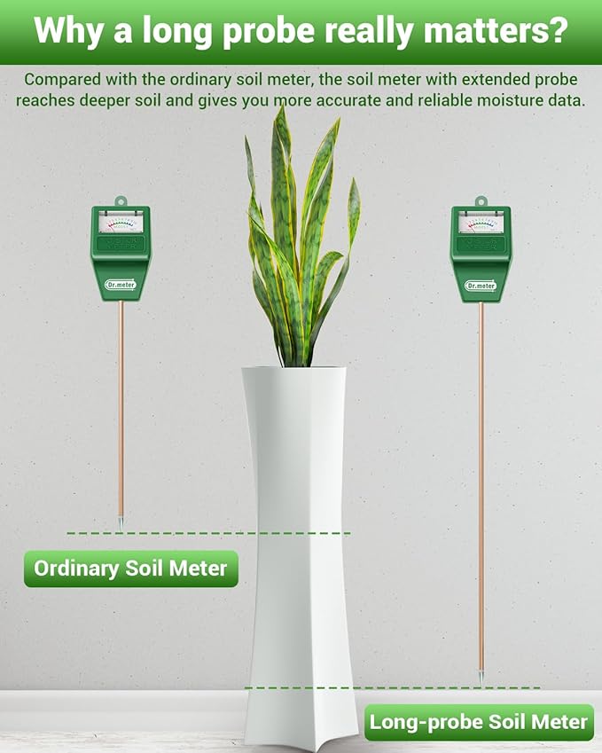 - Gentle to Plant Roots: Keep roots intact when you do readings thanks to the single probe design. You won't have to dig up too much soil or disturb sensitive roots when you take readings so your plants can stay perfectly healthy