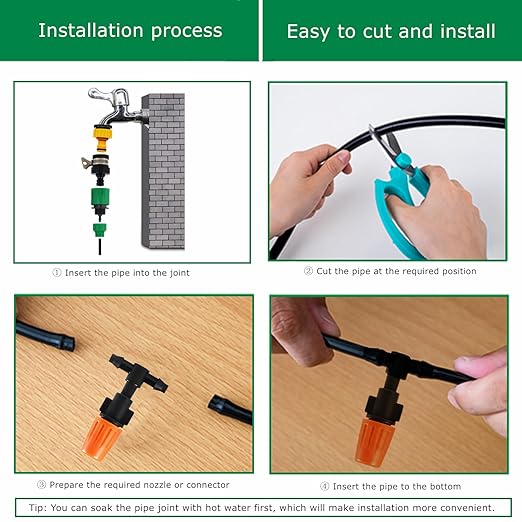 - Adjustable Sprinkler Heads: The water flow of each micro mist spraying nozzle can be individually adjusted to close. Twisting to control spray pressure and diameter, it is very convenient to adjust the watering distance.
