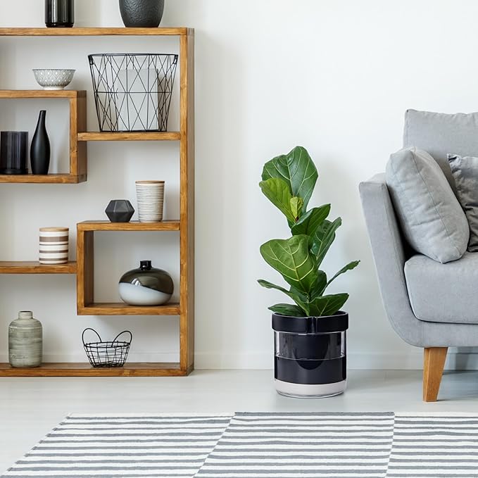 Phoenix Vine 8 Inch Self Watering Terracotta Planter, Black Terracotta Clay Pot with Glass Reservoir for Indoor Plants, Herbs, Flowers, Set of 1, 52-C-H-1