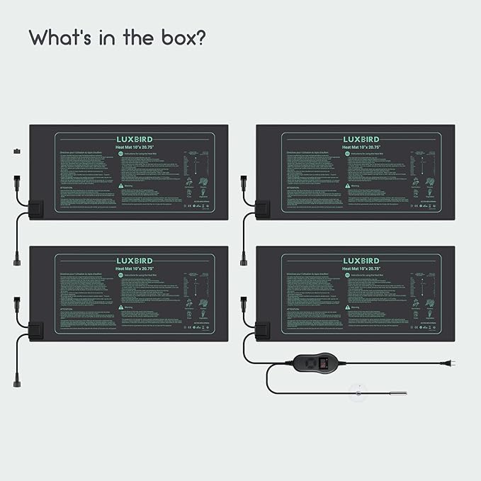 - Wide Range of Applications: LUXBIRD planting heating mat combo is easy to use, easy to manage, for indoor gardening seed starter, also for delivering constant, even heat for warm hydroponic, home brewing, DIY fermentation, and reptile terrariums.