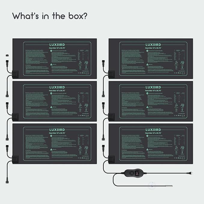 - LUXBIRD Seedling Heating Mat Combo takes indoor gardening to the next level. This time, we can concurrently control up to SIX plant heating mats through just ONE controller, which is more convenient, creating a mini vertical garden of our own.