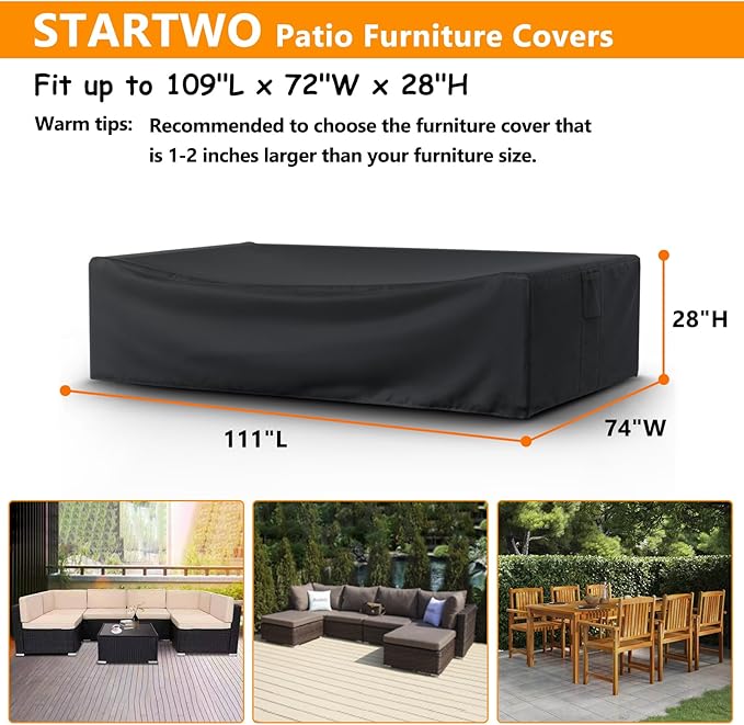 STARTWO Patio Furniture Covers Waterprpoof, Tear Resistant Rectangular Outdoor Furniture Set Cover for Table Chairs and Sectional Sofa, 111"L x 74"W x 28"H