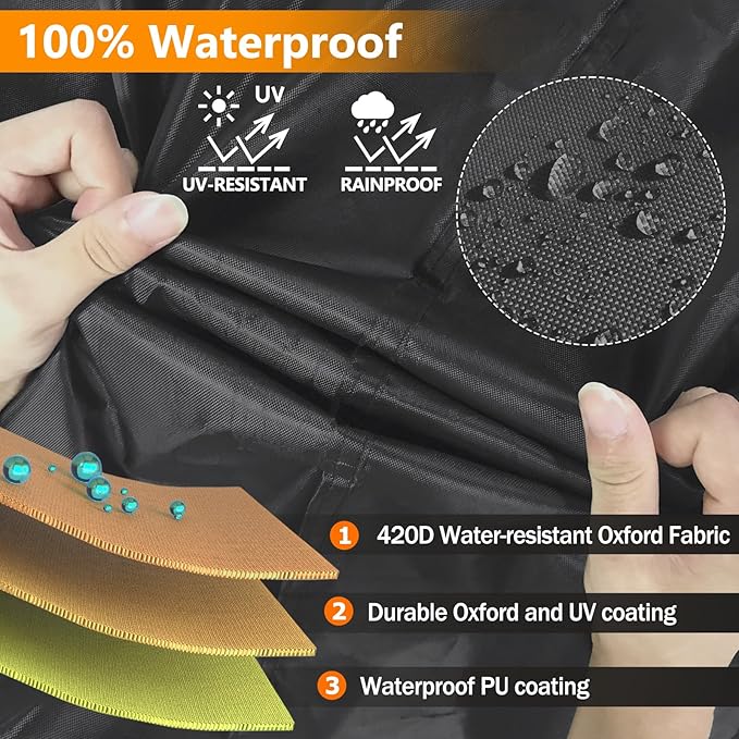 - 【Waterproof & Anti-UV Patio Cover】 Waterproof outdoor furniture cover made of high-density fabric features the solution-durable polyester with added waterpoof, tear resistant and UV stability. STARTWO patio furniture covers will protect your outdoor furntiure from any harsh natural damage like sun, rain, snow, snow, dirt or bird dropping etc.