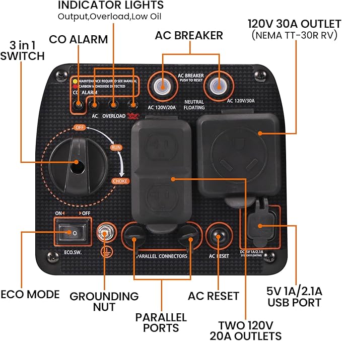 - 【Power More Appliances】 Our generator features two 120V 20A outlets, one 120V 30A outlet, two USB outlets, making it compatible with all types of standard electrical equipment.