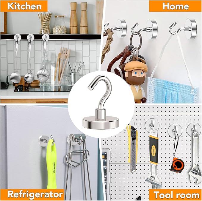 - VERSATILE APPLICATIONS: Our strong neodymium magnetic hooks can be used in various scenarios. The magnet hook is a perfect magnetic key holder. They serve as fridge hooks for hanging small items, as cruise hooks or grill hooks for different hanging needs