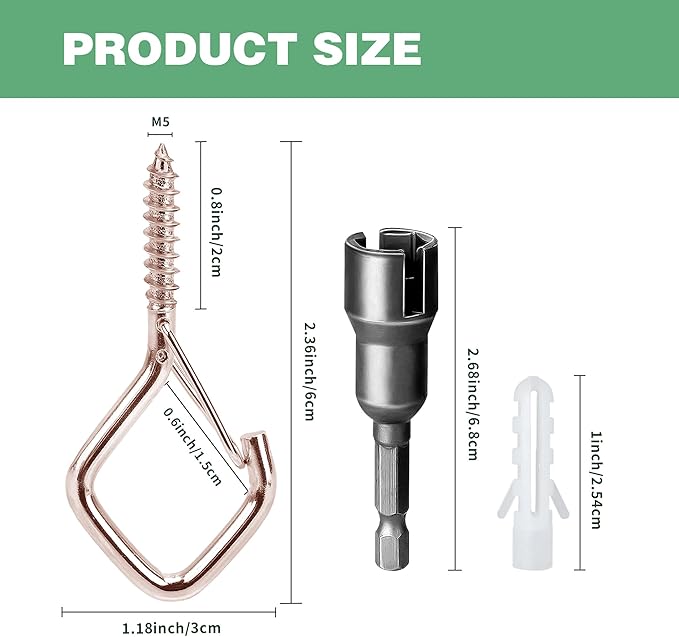 - 【Widely Use】Outdoor plant hooks are easy to install on wood, perfect for patios, decks, fences, etc. Each diamond hook comes with a plastic anchor for solid surfaces like drywall, windowsills, garages, ceilings, etc. Spiral hooks are perfect for hanging lighting items such as holiday lights, outdoor lights, drip lines, plants, birdhouses, curtains, ropes, wind chimes, feeders, flower pots, and more. Decorate your home and keep it clean and tidy.
