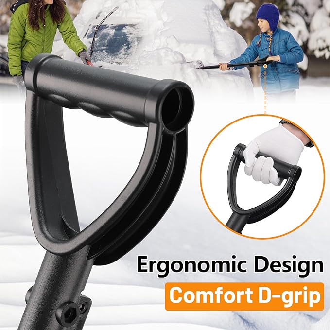 - Durable Metal Handle: Metal handle with a comfort d-grip for added grip and control. No need to worry about breaking when shoveling snow and playing.