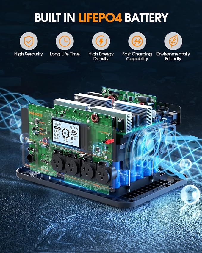 - 【Durable LiFePO4 Battery Built-In】Our power station is equipped with a high-safety LiFePO4 battery that offers exceptional longevity and energy density. With the ability to be used and recharged for over 3000 cycles, it ensures long-lasting performance and reliability. Not only does this battery provide extended lifespan, but it also contributes to reducing the negative environmental impact. Enjoy peace of mind knowing your power station is powered by a durable and eco-friendly LiFePO4 battery.