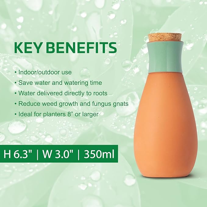 - Premium and Subtle Design: AG plant watering devices is subtle, allowing you to bury most of the plant watering globes within the plant's soil. Crafted from high-quality terracotta, they come in a neutral tone that effortlessly blends into any setting