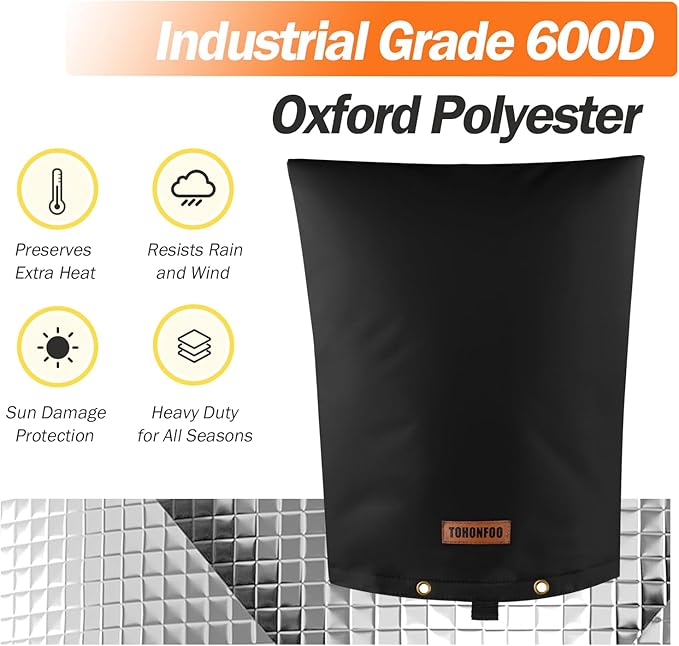 - 【5 Layers Design Insulation & Waterproof】Made of 1 Layer of Waterproof Heavy Duty 600D Oxford Fabric, 2 Layers of Cotton Insulation, and 2 Layers PE Sliver Coated Cloth that make it guard against severe weather. Our sprinkler cover for outside is engineered to endure freezing temperatures as low as 5 degrees. We recommend draining the system to winterize or prevent unknown cold weather.