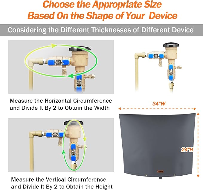 - 【Measure Before Purchase】The size of this sprinkler backflow cover for winter is 34"W x 24"H (Outside Dimension) . Due to the thickness of our cover itself and considering the thickness of the equipment, it is recommended to increase the width and height by 3 inches or more of extra space. Please choose the appropriate size based on your device!