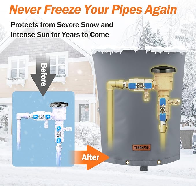 - 【Avoid High Repair Costs】Protects your backflow pipe systems from freezing, bursting, and blowouts due to severe weather conditions like snow, rain, wind, and sun exposure heating. Avoid expensive costs of valve replacement and repair every year.