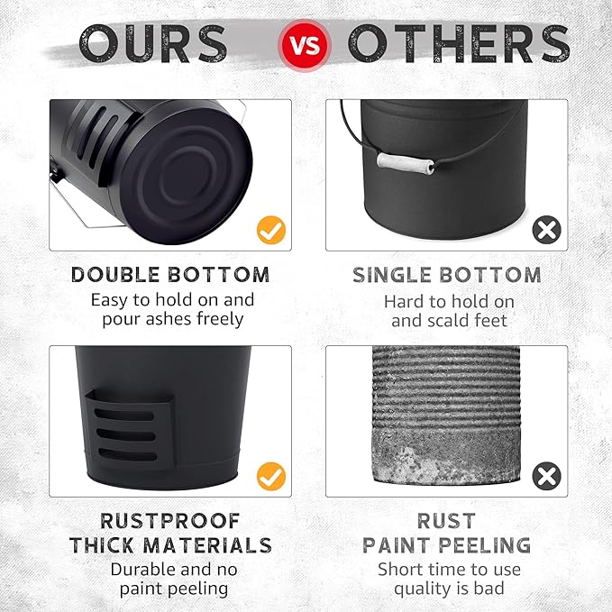 - 【USER-FRIENDLY 】The beauty of the flames of wood burning and pellet stoves come a the price of ashes. That's where a high quality ash bucket or ash can comes in handy. A good fireplace partner, let's forget the ash trouble. If there is any quality issue, please let us know firstly, problem will be solved quickly.