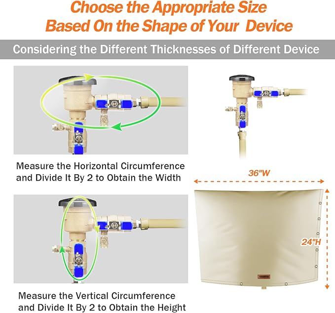 - 【Measure Before Purchase】The size of this sprinkler backflow cover for winter is 36"W x 24"H. Considering the Different Thicknesses of Different Equipment, measure the Horizontal Circumference and Divide It By 2 to Obtain the Width, and measure the Vertical Circumference and Divide It By 2 to Obtain the Height. Choose the appropriate size based on your device.