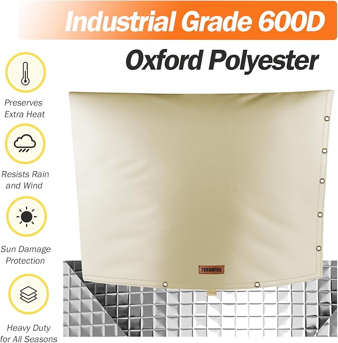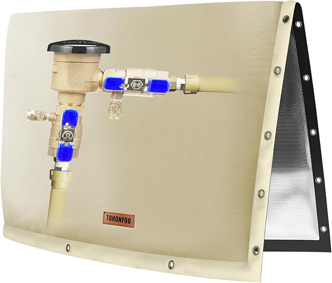 TOHONFOO 2-Way Opening Backflow Preventer Pipe Insulation Cover (5°F) - Irrigation Sprinkler Valve Cover - Water Well Pump Cover - Sturdy 5 Layers for Winter Freeze Protection (36" W x 24" H, Beige)