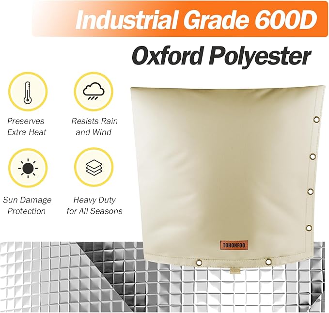 TOHONFOO 2-Way Opening Backflow Preventer Pipe Insulation Cover (5°F) - Irrigation Sprinkler Valve Cover - Water Well Pump Cover - Sturdy 5 Layers for Winter Freeze Protection (24" W x 24" H, Beige)