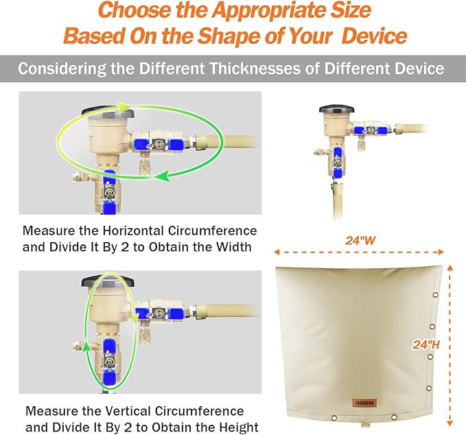 - 【Measure Before Purchase】The size of this sprinkler backflow cover for winter is 24"W x 24"H. Considering the Different Thicknesses of Different Equipment, measure the Horizontal Circumference and Divide It By 2 to Obtain the Width, and measure the Vertical Circumference and Divide It By 2 to Obtain the Height. Choose the appropriate size based on your device.