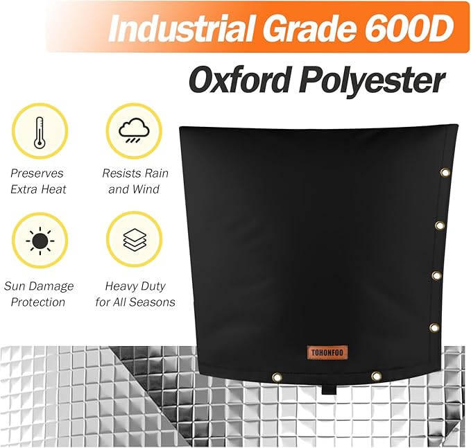 TOHONFOO 2-Way Opening Backflow Preventer Pipe Insulation Cover (5°F) - Irrigation Sprinkler Valve Cover - Water Well Pump Cover - Sturdy 5 Layers for Winter Freeze Protection (24" W x 24" H, Black)