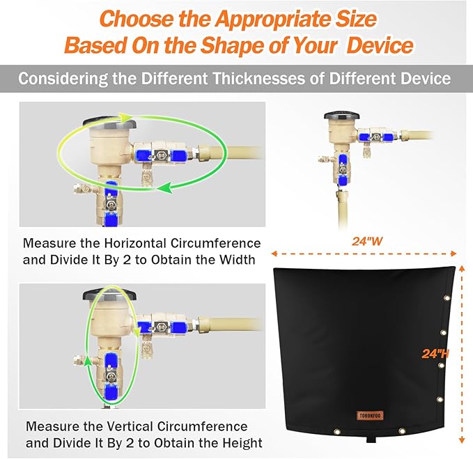 - 【Measure Before Purchase】The size of this sprinkler backflow cover for winter is 24"W x 24"H. Considering the Different Thicknesses of Different Equipment, measure the Horizontal Circumference and Divide It By 2 to Obtain the Width, and measure the Vertical Circumference and Divide It By 2 to Obtain the Height. Choose the appropriate size based on your device.