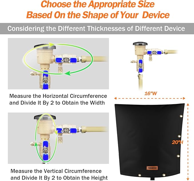 - 【Measure Before Purchase】The size of this sprinkler backflow cover for winter is 16"W x 20"H. Considering the Different Thicknesses of Different Equipment, measure the Horizontal Circumference and Divide It By 2 to Obtain the Width, and measure the Vertical Circumference and Divide It By 2 to Obtain the Height. Choose the appropriate size based on your device.