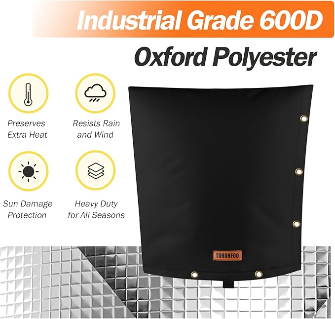 TOHONFOO 2-Way Opening Backflow Preventer Pipe Insulation (5F) - Irrigation Sprinkler Valve and Water Well Pump Cover - Sturdy 5 Layers for Winter Freeze Protection (16" W x 20" H, Black)