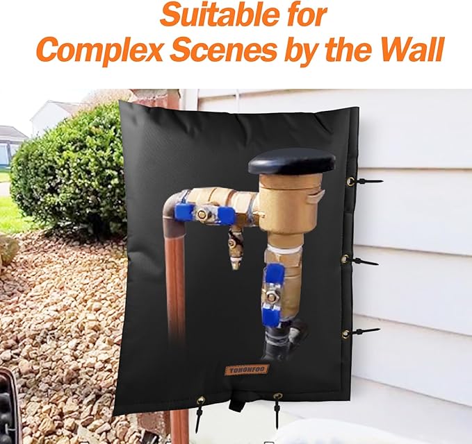 - 【Easy To Install and Stay Sturdy】Put the cover on your backflow preventer and pipes then close it with the Velcro Strips. We also prepared some extra nylon ties to fix it and keep your insulated pouch in place. The grommets also can be locked by Chain to prevent being taken away by theft, increasing security.