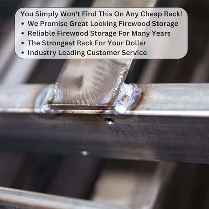 - Hand Arc Welded And Precision Drilled Holes - You Won’t Ever Have To Worry About This Rack Breaking. You Will Always Have Peace Of Mind Knowing Your Firewood Is Stored Safe And Neatly. We Backup Our Quality With A Lifetime Structural Warranty.