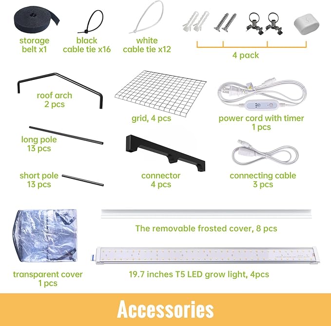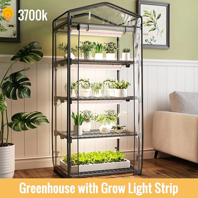 - Durable 4-tier Small Greenhouse with Shelves: Each 19-inch-wide shelf can accommodate your planters with ease. With high-quality metal shelves and heavy-duty bearing nets, it caters to more seed trays and growing lights. Despite its lightweight nature, this greenhouse cabinet indoor ensures long-term use, measuring 26.4"(L) X 19"(W) x 61"(H)