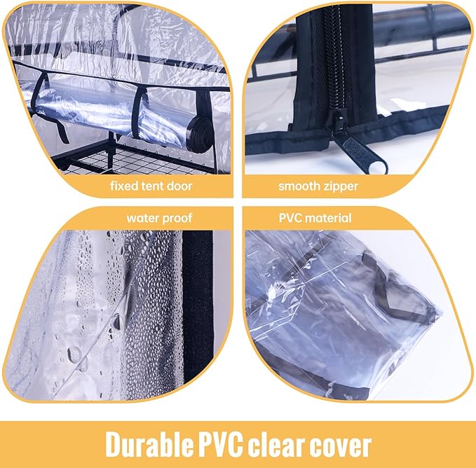 - Greenhouse with PVC Material Cover: Discover the functionality of our compact greenhouse, ideal for both indoor and outdoor use with its clear PVC cover. These plant shelves provide an ideal growth environment for your plants, protecting them from frost and rain. Featuring a zippered roll-up door, it caters to various weather conditions