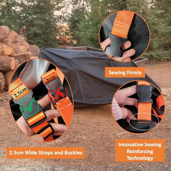 - 【Easy to Clean】As log splitter parts & accessories, the black Oxford cloth and orange webbing come together to produce an elegant yet dynamic overall appearance. The log splitter cover only requires a gentle wipe to remove dirt, and the dust bag is utilized for storage.