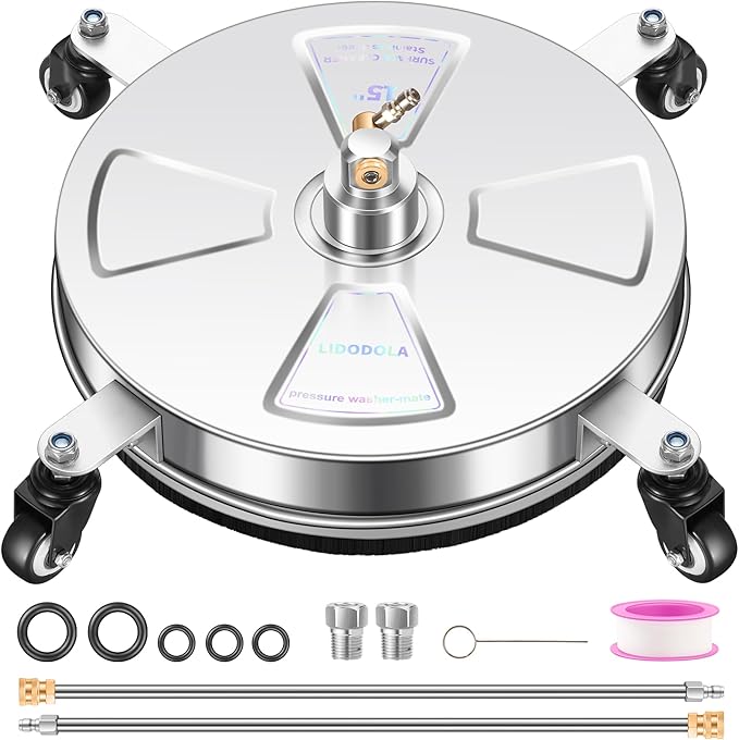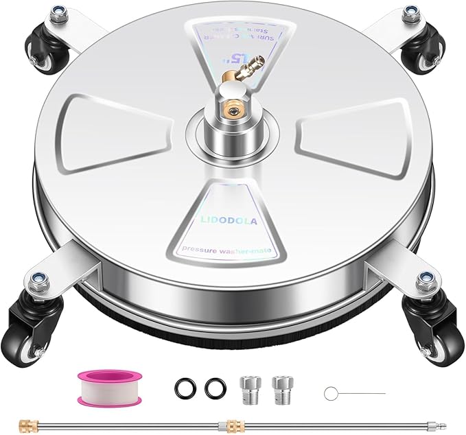 - PROFESSIONAL CLEANING – The Lidodola surface cleaner achieves high-performance cleaning across a 15" wide area with dual spinning nozzles, delivering thorough removal of stubborn stains on driveways, patios, decks, sidewalks, and other large surfaces.