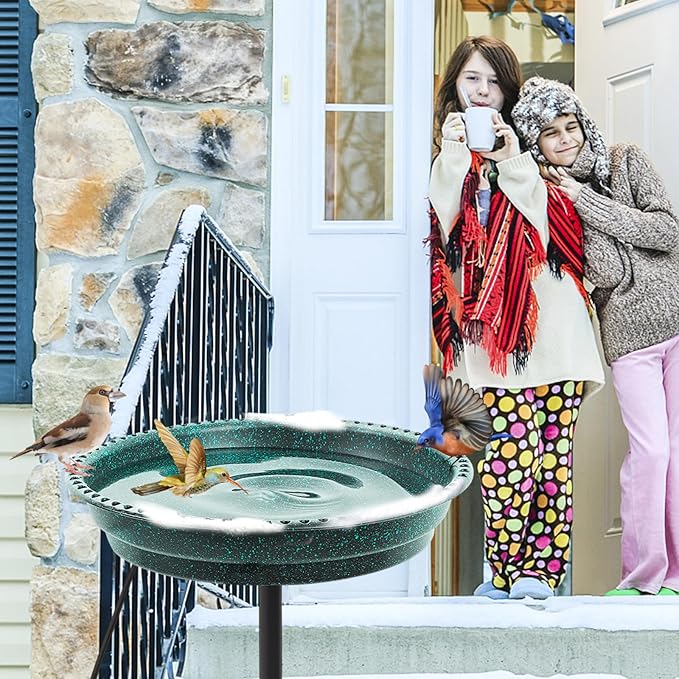 - 【Upgraded Heated Bird bath】 Winter heated bird bath is built in 120V 75w heating element, which can provide high-quality ice-free water for birds in cold winter, and solve the problem of birds drinking water in winter. The bird bath becomes an oasis in the snow as more birds are attracted to it and bring spring to the backyard