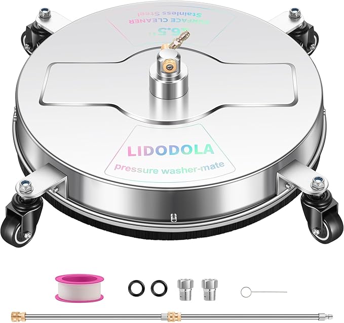 - PROFESSIONAL CLEANING – The Lidodola surface cleaner achieves high-performance cleaning across a 16.5" wide area with dual spinning nozzles, delivering thorough removal of stubborn stains on driveways, patios, decks, sidewalks, and other large surfaces.
