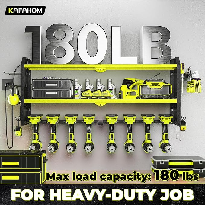 - Robust Construction: Built to last, KAFAHOM tool box organizers and storage wall mount features a sturdy alloy frame and reinforced double-layered metal plates for exceptional load-bearing capacity. It's the ideal utility cordless drill holder for a wide range of tools and accessories.