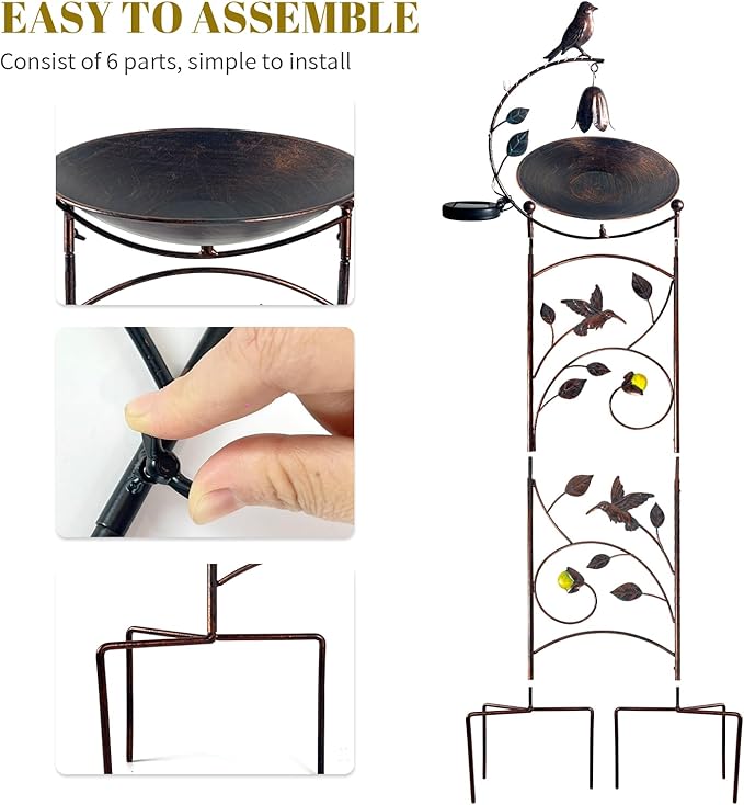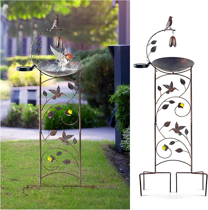 HONGLAND Trellis Bird Baths for Outdoors, 40 Inch Height Garden Plant Trellis Bird Feeders (Bell Flower & Hummingbird)