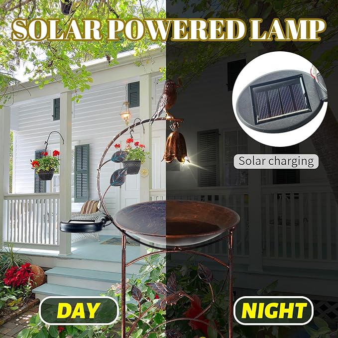 - β¨2-in-1 Solar Garden Decor: Functions as a classic bird bath for outdoors by day. At dusk, it automatically transforms into a soft solar light for garden, creating a cosy ambiance and ambient lighting for your patio, yard, or lawn. It's the perfect outdoor decor to elevate your space.