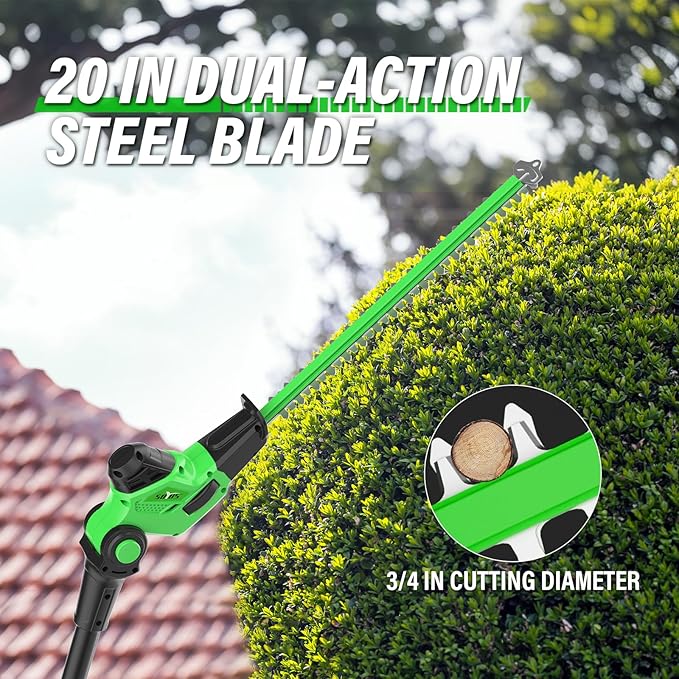 - [SUPER CUTTING CAPACITY] The 18-inch double-action laser cutting blade brings you a highly efficient hedge trimming experience, allowing you to reduce vibration during smooth cutting. The 3/4-inch cutting spacing accommodates pruning needs of different branch sizes. It is a good helper for you to trim your hedges.