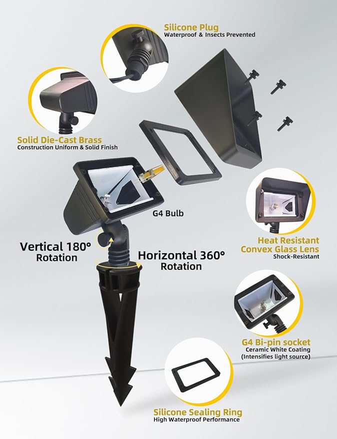 - Unique Design: Enhance your outdoor aesthetics with this beautifully crafted landscape light made of die-cast brass. The fixture is rated IP65 weatherproof and complements the architecture of the surrounding area. With a superior corrosion resistance and pressure resistance, this outdoor floodlight have longer service life and longer lasting than aluminum and plastic lamps.